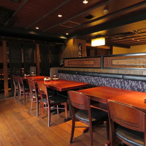 温かな木目調と和モダンな雰囲気がお洒落!人数に合わせたレイアウトも可能です。