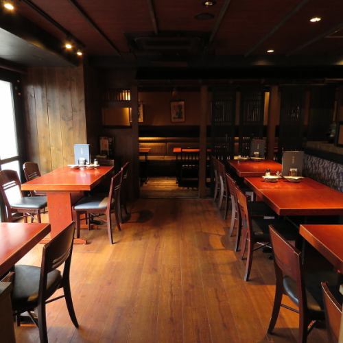 店内は大小テーブル席やカウンター席が配されたゆとりの空間。お食事をごゆっくりお楽しみいただけます。